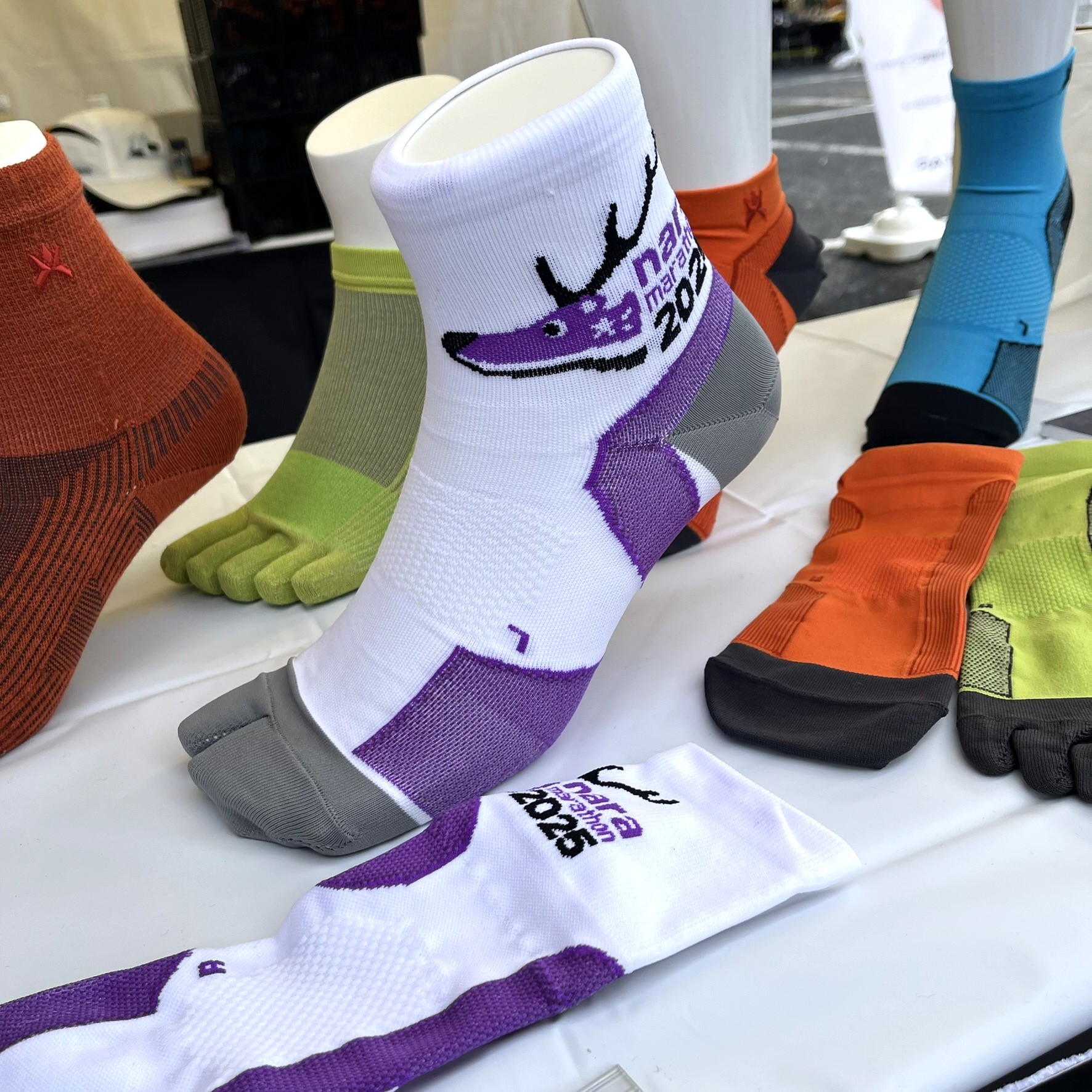 奈良マラソン2025では、参加賞としてこれまでのTシャツに加え、「ランニングソックス」を選択することができるようになりました。同大会で参加賞にランニングソックスが加わったのは初めてのこと。その記念すべき第一回目の参加賞にエルゴスターのソックスが選定されました!奈良マラソン実行委員会から機能性にこだわった仕様をご要望いただき、複数社の候補からランニングの専門家にも評価いただきながら選定されたソックスです。